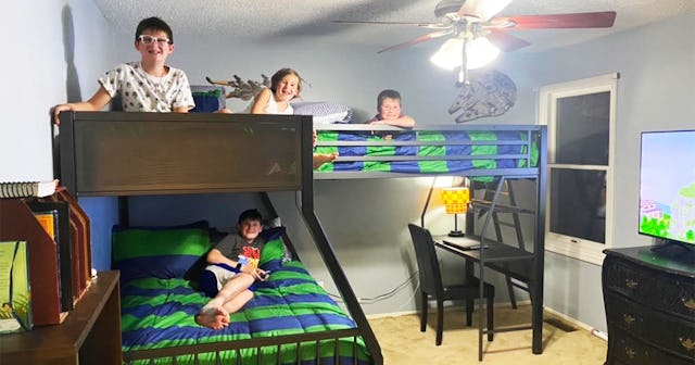 The boys got online and found a three-person bunk bed that seemed to be the solution to everyone’s problems. My husband and I talked about it and realized that this wasn’t a problem so much that it was an incredible blessing. Our kids love each other so much that they wanted to be together. We weren’t going to argue with that.