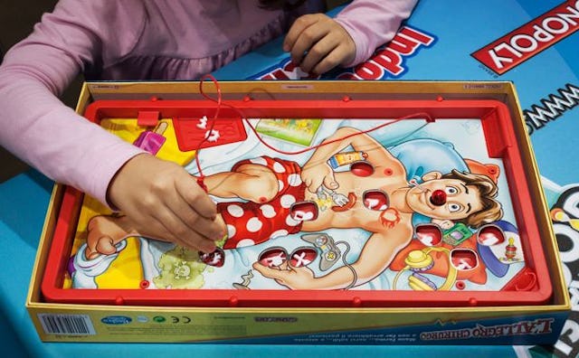 2. Operation: Having a steady hand and nerves of steel might be important when removing the “Butterflies in the Stomach” in Operation, but the skills learned there are a warm-up for later years. Anyone who has ever had to hold down a screaming, thrashing kid to remove a splinter from his foot will likely agree with me. Having laser focus and remaining calm in the face of a kid snarling and spewing snotty tears is crucial, and already being able to extract foreign objects with the threat of negative results gives me an edge. Thanks, naked man with a Rudolph nose.
