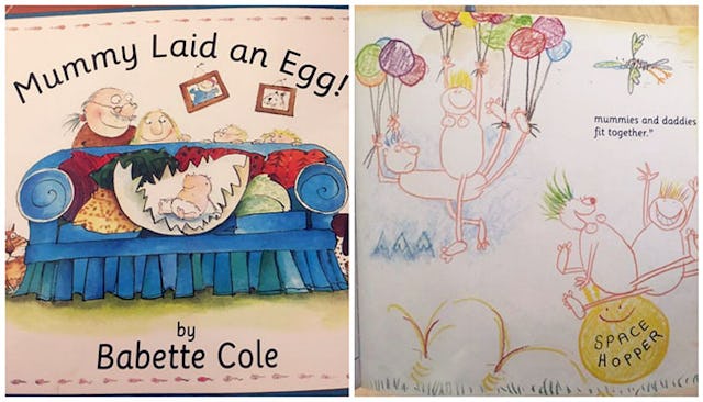 Peck’s children, four-year-old daughter Adem, and eight-year-old son Ayla, grabbed the book Mummy Laid An Egg: Or Where Do Babies Come From and asked her to read it to them. As Peck explains on Facebook, what sounds from the title like a playful, child-friendly explanation of the birds and the bees is actually more like a cartoon sex manual.