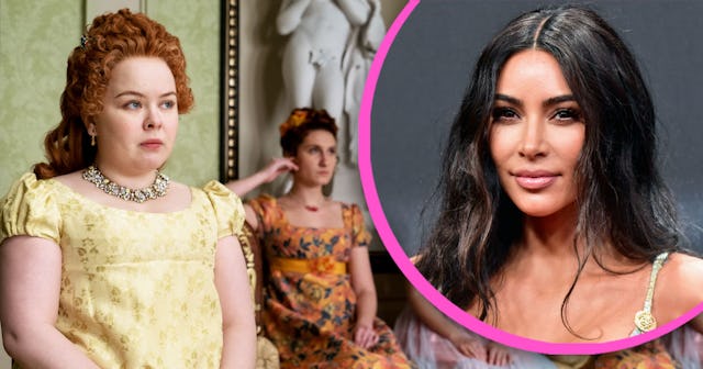 The reality star has documented her love for Bridgerton on Instagram, and at least one cast member took notice. Nicola Coughlin—the actress who plays Penelope Featherington and (SPOILER ALERT) Lady W, by extension— dubbed Kim “the world’s number one Bridgerton Stan” on Twitter, and shared a hilarious behind-the-scenes tidbit. Apparently, Coughlin and the other two actresses who play the Featherington sisters drew inspiration from the Kardashians.