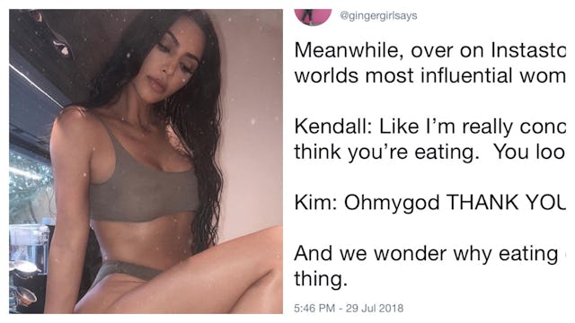 All of Kardashian’s excited “thank you so much” responses are actually promoting a serious, and potentially deadly, eating disorder that many suffer from. It was ignorant, and responding that way is a huge trigger for a lot of us.