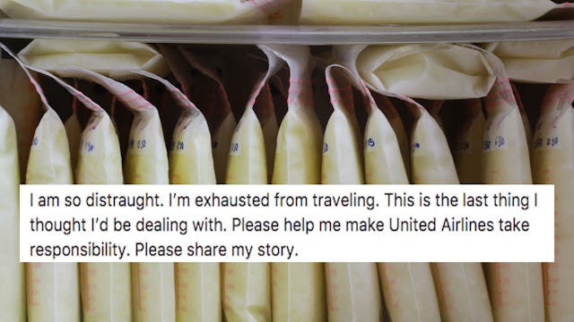 Damn. Straight. While the airline may not be able to locate or replace that precious milk, her devastation is beyond valid. Pumping that milk takes time, energy, and it means planning out your day in excruciating detail. Having pumped milk means nourishment for your baby, and freedom for yourself — if she were to get mastitis again, for example, she would have had plenty of backup breastmilk.