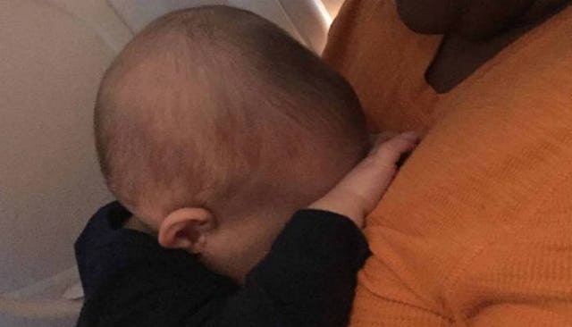 Baby gravitates towards woman on flight who jokingly says it’s the “power of the boobies”