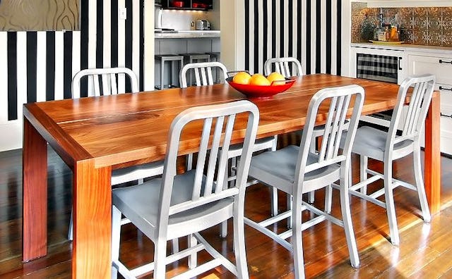 I still love this damn table, even though a family of five does not fit around it, and the chairs are all beat to hell and duct taped, and we never quite got around to stripping the rust from the studs. I don’t want to get a new table. But we really, really need a new table.