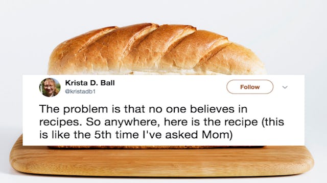 Krista’s recap of her conversation with her mother surrounding this bread “recipe” is one of the most relatable things you’ll read today.