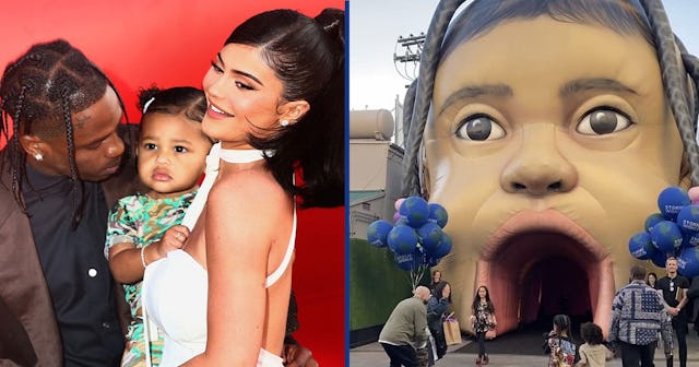 Upon arrival, guest were handed maps to guide them through the maze of attractions, carnival rides, and games (many featuring prizes adorned with Stormi’s head) as well as a StormiWorld-themed store and bar. But first, they walked through an enormous inflatable version of the toddler’s head, flanked by hosts holding balloons.