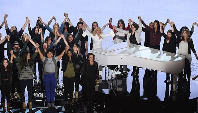 Lady Gaga honors sexual assault survivors with her Oscars performance.