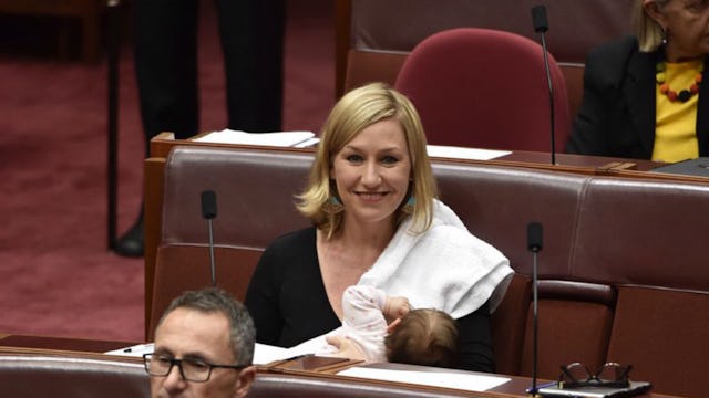 Larissa Waters made history this week, simply by feeding her daughter. The Australian senator and mom to two-month-old daughter Alia Joy came back to work on Tuesday after maternity leave. She brought her daughter in with her for voting and when little Alia got hungry her mom breastfed her, right there on the Parliament Senate floor. In doing what any mom with a hungry baby should feel supported in doing, Waters became the first politician in Australia to breastfeed in Parliament.