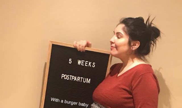 “So when are you due?” Mum on the Run blogger Laura Mazza wrote next to a picture with a sign that reads, “5 weeks postpartum with a burger baby.” “Not due for my period, not due for a poo, not due for the promotion… when am I due to have my baby? That’s what she meant,” she said.