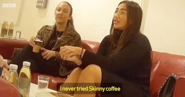 The seller then asks: “Because we were a bit worried that maybe you’d want to, you’d need to try it, before you mention it – no, not bothered?” To which she says no. She also laughs about having friends who trust her word on Skinny Coffee and buy the product, even though she’s told them she’s never actually used it herself.