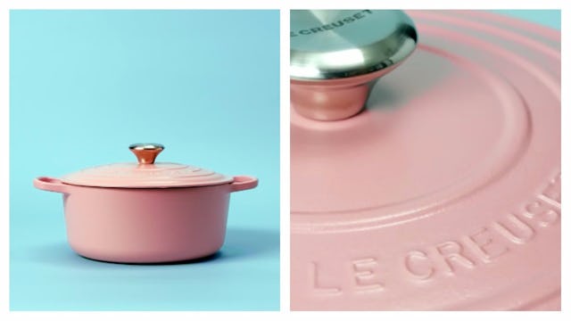 Le Creuset is known for its heavy duty cookware (literally.) These pots are so heavy you have to hit the gym to regularly cook with them, but you won’t care once one is on your stove because it’s just so pretty. And now they’ve gone and made a line of “Sugar Pink” cookware. Sites keep calling it “Millennial Pink,” but that’s stupid and annoying so they should stop.