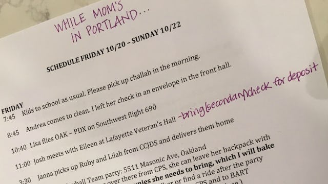 Even more true is, if I didn’t leave him these details, I, too, would be stressed. I’d be worried about all the information he doesn’t have and worried about the kids being anxious about the location of soccer gear, rides to parties, and what to bring where. Leaving a schedule is me offloading a small slice of my mental load, just for the weekend.