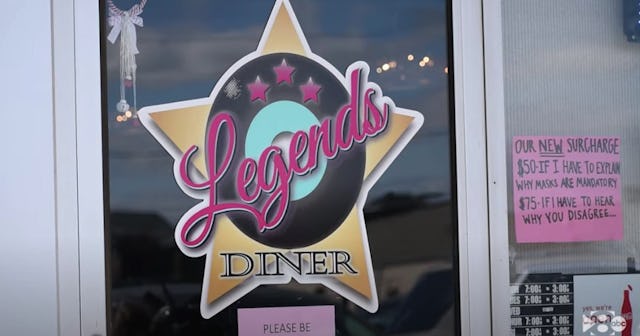 However, Legends Diner didn’t give an eff and put a sign in the window that reads: “Our new surcharge. $50 if I have to explain why masks are mandatory. $75 if I have to hear why you disagree.”