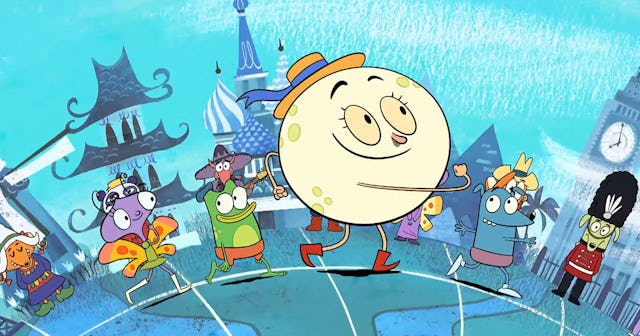 On the show, the moon is named Luna (and voiced by actress Judy Greer) and she’s friends with three kids — a wombat named Leo who is from Australia, a butterfly from Mexico named Carmen, and a frog from America named Andy. The kids’ parents are in a traveling circus, which has the crew traveling all around the world.