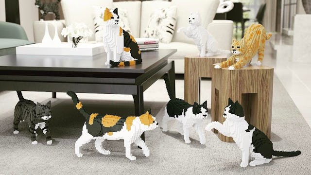 Hong-Kong-based toy company JEKCA started producing cat blocks back in 2017, but we just stumbled upon them recently. The sets come with large, LEGO-like blocks that you can assemble into not just a cat, but a realistically posed, life-sized cat. Pose them all over your apartment, and it can feel like you have an entire herd of cats around you, which is every cat lady’s best life.
