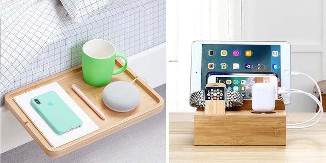 This good-looking clip-on shelf is great for dorm rooms where space is at a premium, and can accommodate up to 15 pounds of stuff. It’s easy to install and remove — all you need to do is tighten clamps around the side of the bed — so no need to worry about ruining any dorm furniture, either. Reviewers note it’s especially useful for students who have medical items they may need access to at night, with one mom writing, “I purchased the larger one which is good for books, water bottle, glasses, phone....but my son uses it for all of his diabetes items. This shelf keeps a blood glucose kit, juice box, glucose tablets, phone, and glucose monitor within arms reach which is necessary during the night.” There are several different versions available, including one with a cupholder and one that slides under a mattress if there’s nothing else to clamp onto.