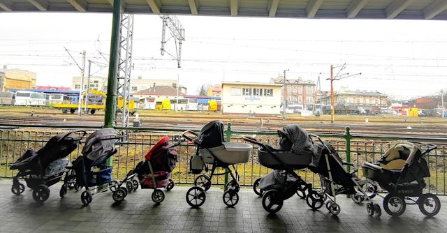You can see that in some of the strollers there are blankets and supplies for refugee families arriving in Ukraine’s neighboring country to seek shelter as their homeland continues to be attacked by Russian forces. According to the CNN, the United Nations estimates that at least 1.5 million refugees have fled Ukraine since the beginning of the invasion, with up to 80,000 people crossing the 300-mile border between Ukraine and Poland every day.