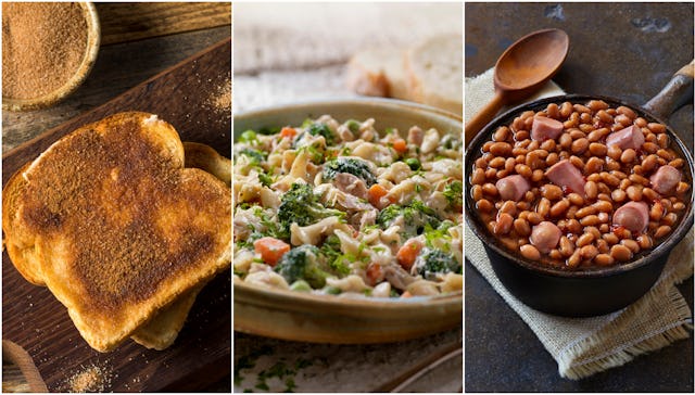 Necessity is the mother of invention, and that’s never been more true than when you look at food — some of the best meals and snacks are often the cheapest to make. Even as our financial situations change, it’s hard to leave those dishes behind. (That’s why we pay big money for basic beans and rice at the local Mexican place.) And it’s why, when we’re feeling under the weather or trying to stretch a dollar, we still turn to butter and egg noodles to fill our bellies and hearts. What was once the only thing left in our refrigerators and pantries have now become nostalgic staples. Those former “struggle meals” have graduated to comfort food. From Hamburger Helper to potato flakes, some things are just too good to let go of... no matter how much money you have.