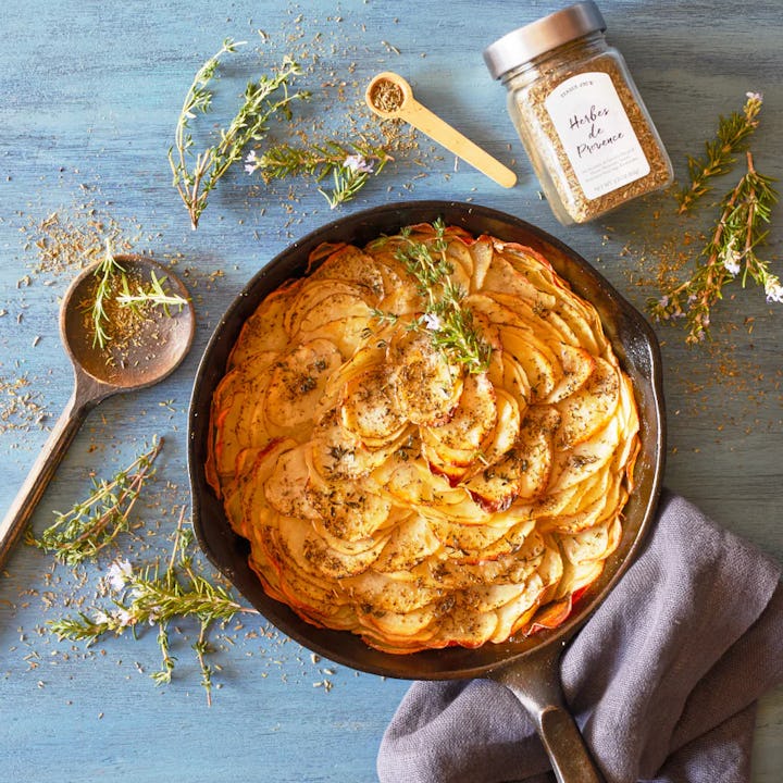 Sure to wow your guests' stretchy pants off, TJ's Crispy Herbes de Provence Potatoes is made with gold potatoes, butter, grated parmesan cheese, breadcrumbs, and TJ's Herbes de Provence, plus rosemary leaves. Serves six (so maybe double it because you know these will go fast.)