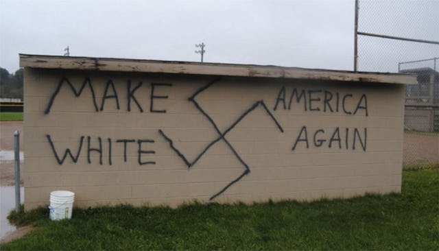 Let me make it very clear that the one thing I’m not thinking when I see your swastika is “I’m so afraid.” I am not scared of your spray-painted racist ejaculate covering a wall. You defaced a public area and then you ran away like a scared child. You’re not standing there rallying followers to a cause with a purpose and mission that will make the world better. Because you don’t have one.