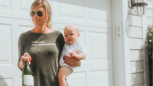 Be real. This is the most important characteristic in my book. Cut the crap. Cut the “look how perfect my children are.” Cut the #besthusbandever B.S. Just freaking be real. See the picture that accompanies this piece? I legit didn’t have anyone to take it, so it’s fuzzy. My hair is frazzled. I’m carrying two bottles of wine and a baby, because real life.