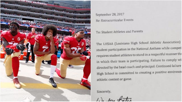 Intercept reporter Shaun King shared an image of a memo sent by the principal of Bossier Parish’s Parkway High School letting students know they will stand, or face potential dismissal from the team.