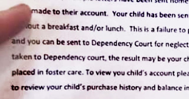 Luzerne County school district sent a letter to parents who were delinquent on their lunch bills (around 1,000 students), warning if they don’t pay immediately, the school will be reporting them to dependency court which could result in their kids being removed from their homes.