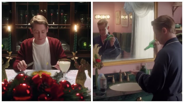 It’s all in the details, folks. From the second we see Culkin open the door, it’s clear we’re right back inside the extra AF McCallister house, decked out in red and green from top to bottom.