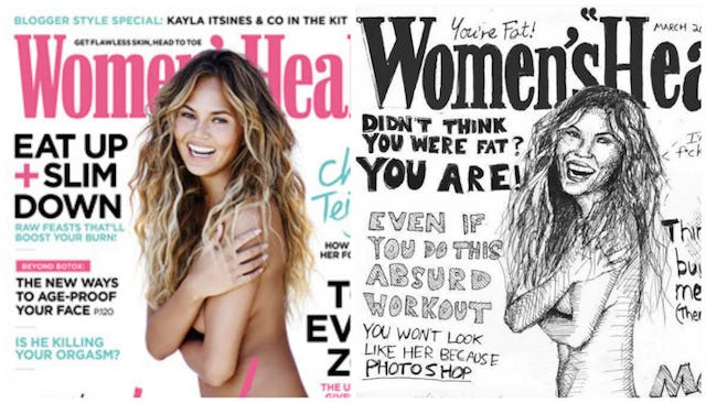 If you ever want to feel like total crap, just check out the cover of a women’s magazine, right? Weight loss tips, fashion must-haves you can’t afford, a brief list of all the ways you’re failing in the bedroom – oh, and in the middle of it all, some gorgeous, scantily clad model who’s been Photoshopped beyond recognition. It’s enough to make you want to curl up in bed with a box of donuts and never leave your room again. That’s why one Boston cartoonist named David London created a hilarious parody reminding us the stuff we see on magazines is complete and utter bullshit.