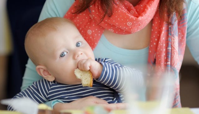 One night, we were having burgers and I thought there would be no harm in giving her some bread. I broke off a few tiny pieces of a burger bun and put them in her high chair.