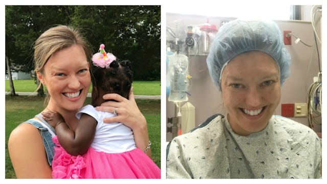 56 days after I was diagnosed, I had a bi-lateral mastectomy, direct-to-implant. I was given the option of radiation and a lumpectomy (where only part of the breast tissue is removed), but I simply didn’t have peace about that choice.