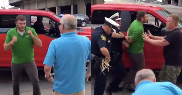 The attack happened before Trump’s rally was set to begin, and shows Frazier hopping from his red pickup truck and going after Alter for seemingly no reason at all. He viciously went at a man old enough to be his father for the simple fact that he was there protesting Trump.