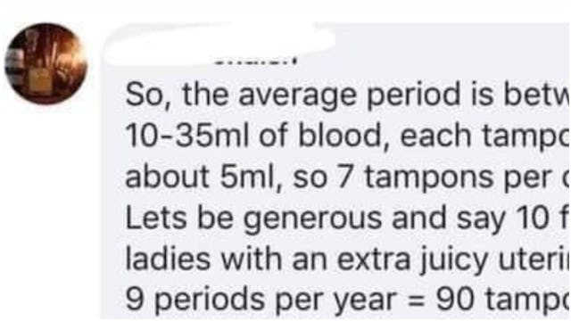 Warning: there’s a whole lot of ridiculous mansplaining up ahead. A man wrote a Facebook post trying to explain why tampons aren’t expensive – and got literally all of his facts and figures wrong. Here’s a heads up – if you don’t have a blood flow every month, we really, really don’t need your opinion on the topic.