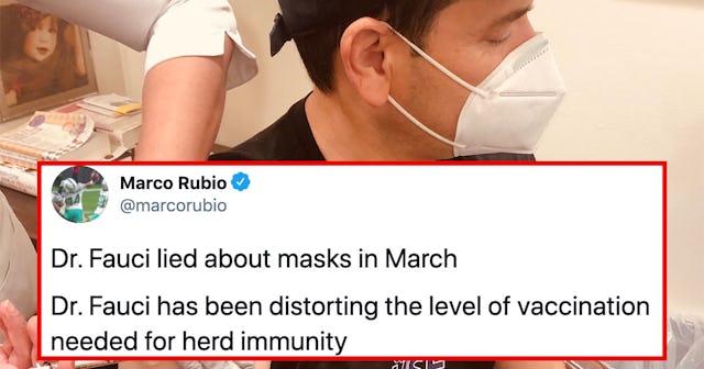 Marco Rubio is being shredded on social media for coming after Dr. Fauci — a week after getting his own COVID vaccine, of course