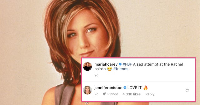 Mariah Carey got in on the action by posting a throwback of herself attempting the iconic haircut and it caught the eye of none other than Rachel herself: Jennifer Aniston. “#FBF,” Carey shared on Instagram next to an old picture of herself. “A sad attempt at the Rachel hairdo #friends.”