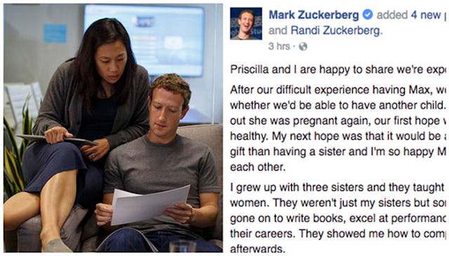 When Mark Zuckerberg announced that his wife Priscilla was pregnant with their first child, he did so with a refreshingly honest post about their fertility struggles that touched millions. Today, he announced Priscilla is pregnant with their second child, and his post is a really beautiful tribute to family and women.