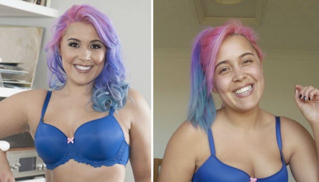 Megan Jayne Crabbe, who blogs at Bodyposipanda is doing her part to show the world how staged and unrealistic the lingerie photos are that we see in magazines and on billboards. The body positive social media star shared photos of herself on her popular Instagram page in lingerie–one with professional makeup, lighting, and positioning and the other with a more natural pose sans makeup.