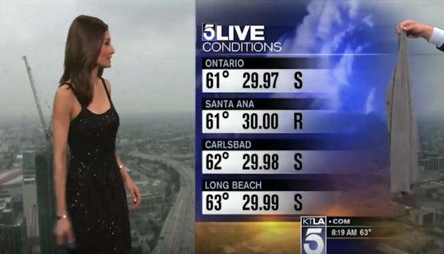 Apparently while Chan was doing her actual job by telling people the weather forecast, some viewers were distracted by … what, exactly? Her clavicle? The way the beads on her dress shimmered in the light? Who knows.