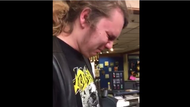 On his birthday, Johnathan’s sister Chandler Crow blindfolded him and took him to their local music shop. The teen is a huge heavy metal fan and has been looking at the black Dean Razorback guitar ever since he started taking lessons. (The Dean Razorback is a badass guitar that’s popular among heavy metal rockers.) He didn’t know it, but waiting for him at the shop was the exact guitar he’d been eyeing. Chandler recorded the sentimental reveal and her brother’s emotional response. The Facebook video resonated around the world and is making everyone cry, because just watch it.