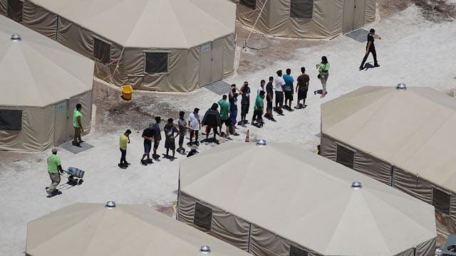 TORNILLO, TX – JUNE 19: Children and workers are seen at a tent encampment recently built near the Tornillo Port of Entry on June 19, 2018 in Tornillo, Texas. The Trump administration is using the Tornillo tent facility to house immigrant children separated from their parents after they were caught entering the U.S. under the administration’s zero tolerance policy. (Photo by Joe Raedle/Getty Images)