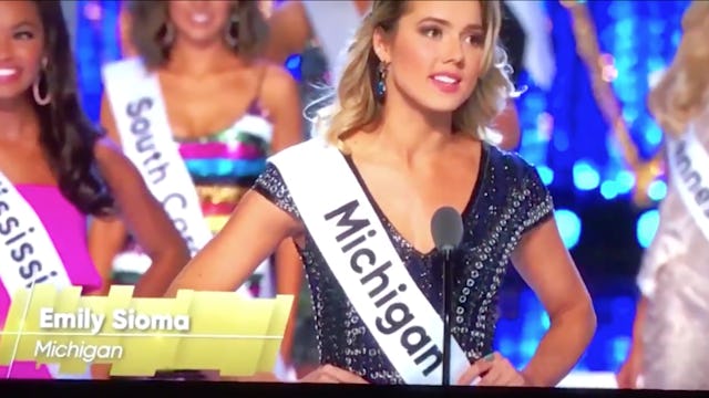 Miss Michigan Emily Sioma made use of her three seconds of airtime during the Miss America pageant