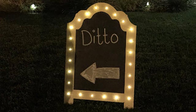 “(Night version)” it reads. The sign lights up so you can see it at night. This is magic.