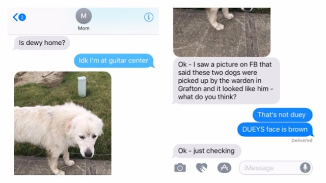 Moms have a lot of shit on their minds. We can’t be expected to know everything, and for one mom, that includes small details such as, what the family dog looks like. Jeff Squires shared photo and text evidence of his mother’s dog identification fail, and it immediately blew up on Twitter — over 200,000 retweets and climbing.