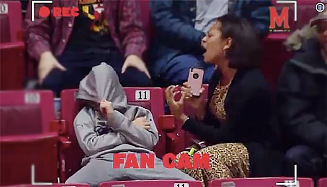 The Fan Cam was doing its job during a timeout of the Maryland Terrapins and Loyola Greyhounds basketball game, searching the crowd for a person in just the right mood. And that person was mom Mandy Remmell.