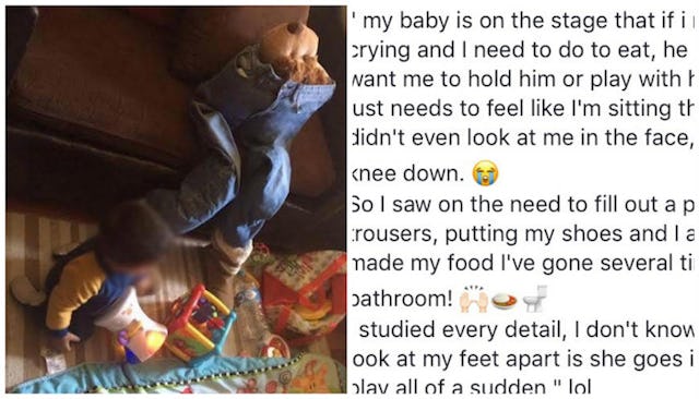 She did it. Girl found a glitch in the matrix and discovered a way to get her velcro-like toddler to back off long enough for her to make a damn sandwich, and we’re in total awe. She rigged up a fake half-body version of herself just for the privilege of being able to walk away briefly without setting off Toddlergeddon. Mom level: secret agent.