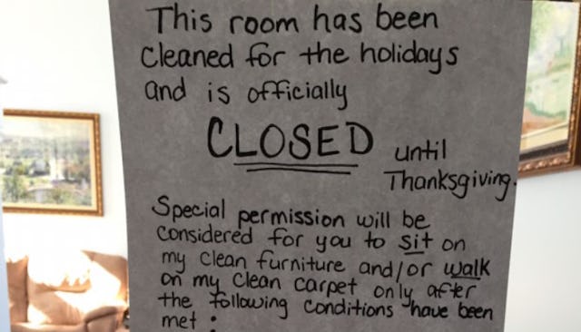 Mom Snaps, Closes Living Room Until Thanksgiving
