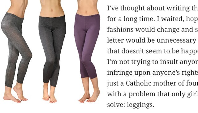 “Catholic mom” wants to know why girls must wear leggings, tempting her precious sons