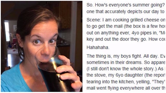 “How’s everyone’s summer going? Here’s an excerpt from mine so far, one that accurately depicts our day to day shit-show,” mom of three, Karen Johnson, posted on her Facebook page 21st Century SAHM.