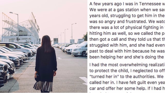 “We were at a gas station when we saw a woman with a boy of about 10 years old, struggling to get him in the car,” she writes. “He was screaming and she was so angry and frustrated. We watched her get him in the car and there was a lot of physical fighting in the car. It looked like she was hitting him as well, so we called the police.” Deciding to call the authorities is never an easy decision. Burnside must have been worried about the wheels her call would set in motion, but she thought she was doing the right thing for the child.