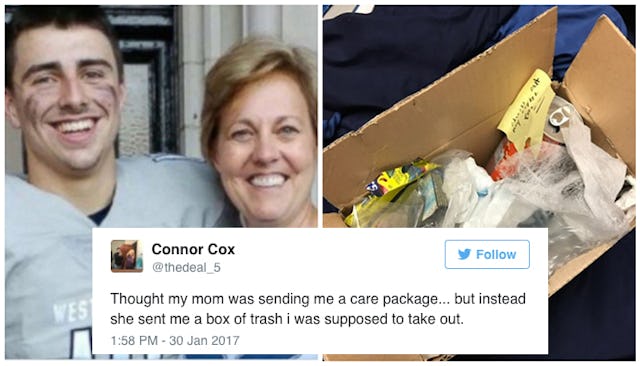 Mom Sends College Student A Care Package Of The Trash He Forgot To Take Out